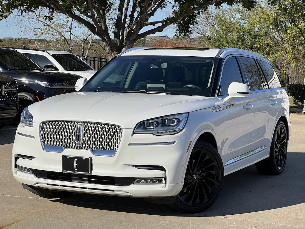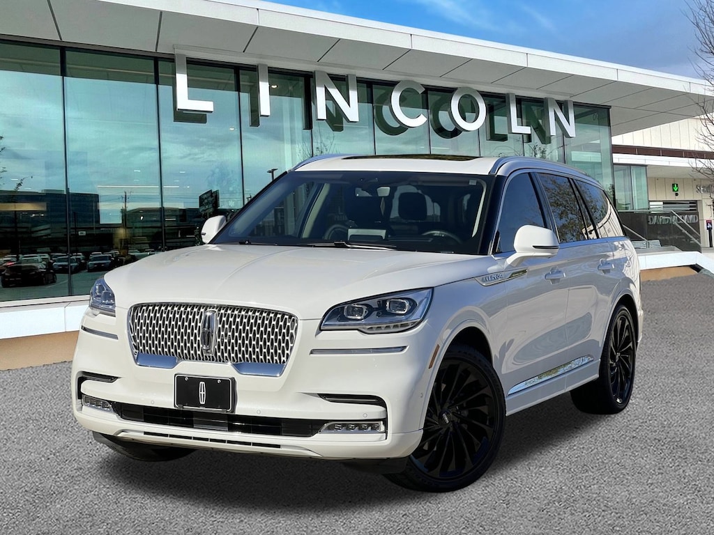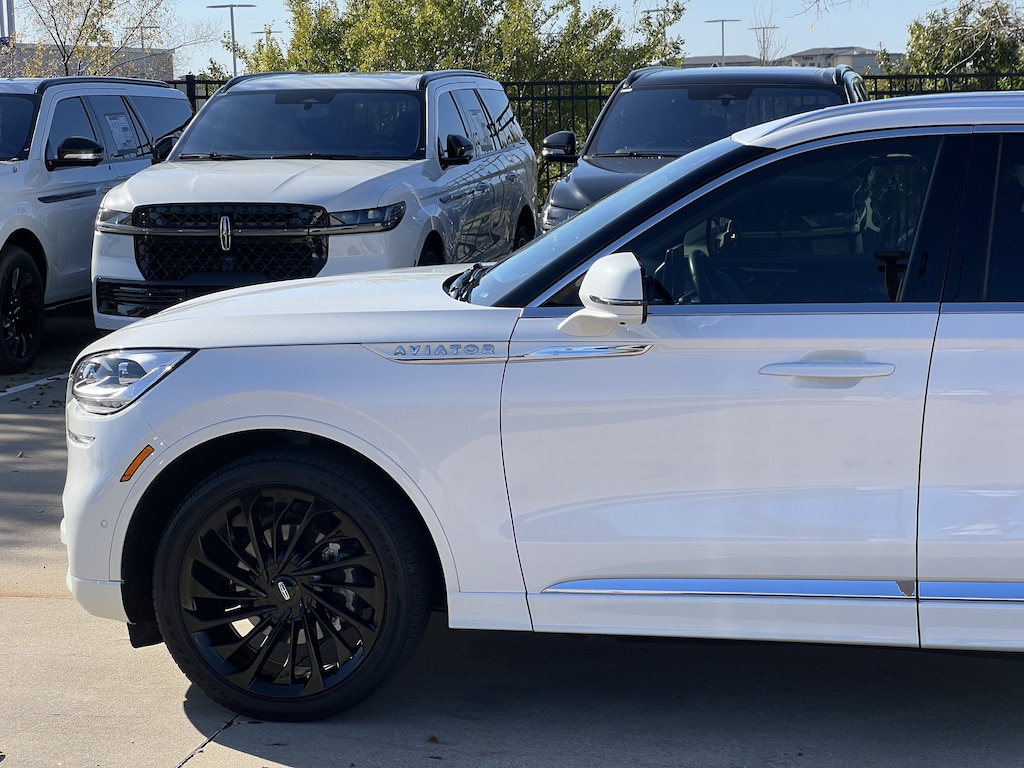 White 2021 Lincoln Aviator Reserve RWD 10-Speed Automatic 3.0L V6 Aviator Reserve, 4D Sport Utility, 3.0L V6, 10-Speed Automatic, RWD, White, Ebony Leather, 14 Speakers, 3.58 Axle Ratio, 30-Way Perfect Position Seats w/Active Motion, 3rd row seats: split-bench, 4-Wheel Disc Brakes, ABS brakes, Active Park Assist Plus, Adaptive Cruise Control w/Traffic Jam Assist, Adaptive Pixel LED Headlamps, Air Conditioning, All-Weather Floor Liners w/Fr&Rr Carpet Floor Mats, Alloy wheels, AM/FM radio: SiriusXM, Audio memory, Auto Air Refresh, Auto Heated/Ventilated Driver & Passenger Seats, Auto High-beam Headlights, Auto-dimming door mirrors, Auto-dimming Rear-View mirror, Automatic temperature control, Brake assist, Bumpers: body-color, Compass, Convenience Package, Delay-off headlights, Driver door bin, Driver vanity mirror, Dual front impact airbags, Dual front side impact airbags, Electronic Stability Control, Elements Package Plus, Emergency communication system, Equipment Group 208A, Evasive Steering Assist, Four wheel independent suspension, Front anti-roll bar, Front Bucket Seats, Front Center Armrest, Front dual zone A/C, Front fog lights, Front reading lights, Full Rear Console, Fully automatic headlights, Garage door transmitter, Head-Up Display, Heated door mirrors, Heated front seats, Heated Steering Wheel, Heated VisioBlade Wipers, Heated/Ventilated 2nd Row Outboard Seats, HVAC memory, Illuminated entry, Illumination Package, Knee airbag, Lincoln Co-Pilot360 Plus, Lincoln Lit Star in Grille, Low tire pressure warning, Luxury Package, Memory seat, Navigation System, Occupant sensing airbag, Outside temperature display, Overhead airbag, Overhead console, Panic alarm, Passenger door bin, Passenger vanity mirror, Phone As A Key, Power door mirrors, Power driver seat, Power Liftgate, Power moonroof: Panoramic Vista Roof, Power passenger seat, Power steering, Power windows, Premium Lthr Heated/Ventilated Fnt Captain's Chairs, Radio data system, Radio: Revel AM/FM Audio System w/14 Speakers, Radio: Revel Ultima 3D Audio System w/28 Speakers, Rain sensing wipers, Rear air conditioning, Rear anti-roll bar, Rear audio controls, Rear Door Sunshades, Rear dual zone A/C, Rear reading lights, Rear window defroster, Rear window wiper, Remote keyless entry, Reverse Brake Assist, Security system, SiriusXM, Speed control, Speed-Sensitive Wipers, Split folding rear seat, Spoiler, Steering wheel memory, Steering wheel mounted A/C controls, Steering wheel mounted audio controls, SYNC 3 Communication & Entertainment System, Tachometer, Telescoping steering wheel, Tilt steering wheel, Traction control, Trip computer, Turn signal indicator mirrors, Variably intermittent wipers, Wheels: 20 Bright-Machined Aluminum, Wheels: 22 Black Aluminum, Wireless Charging Pad.
