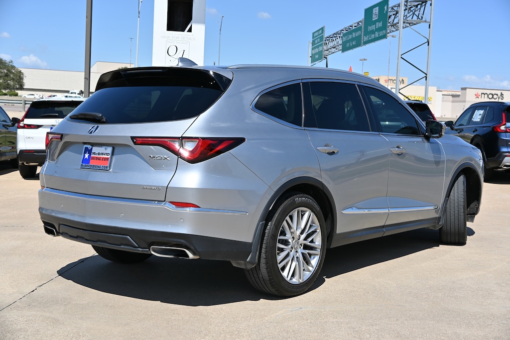 -CARFAX ONE OWNER- This 2023 Acura MDX w/Advance Package looks great with a clean Ebony interior with leather seats and Lunar Silver Metallic exterior! Bluetooth Heated Front Seats Keyless Entry Remote Engine Start Back Up Camera Navigation Sunroof/ Moonroof PRICED TO SELL QUICKLY! RESEARCH SUGGESTS IT WILL NOT BE AVAILABLE FOR LONG. If you view our website at: https://www.mcdavidhondairving.com/ you will have access to more photos, the full Value Report and a Vehicle History Report! Please call (469) 405-3340 Call us today to schedule a hassle-free test drive at our Toll Free Number! We are located at: 3700 W Airport Fwy, Irving, TX 75062. For more than 70 years, David McDavid Honda of Irving has been serving the automotive needs of drivers throughout the Dallas Fort Worth Metroplex. We stock a large selection of new and used Honda cars at great prices. If you need assistance with choosing a new car, obtaining financing, or have service and repair questions, our friendly and knowledgeable staff will get your questions answered. Our dealership is located in Irving, but we proudly serve the Dallas, Fort Worth, Arlington, and Grand Prairie and DFW area.