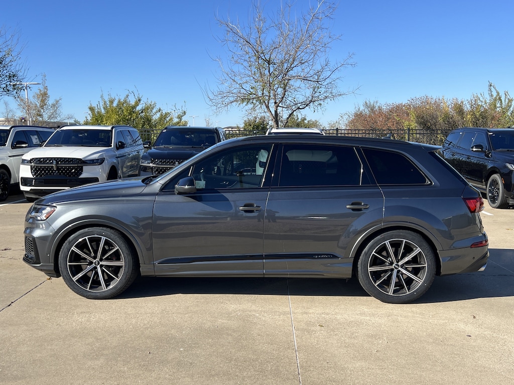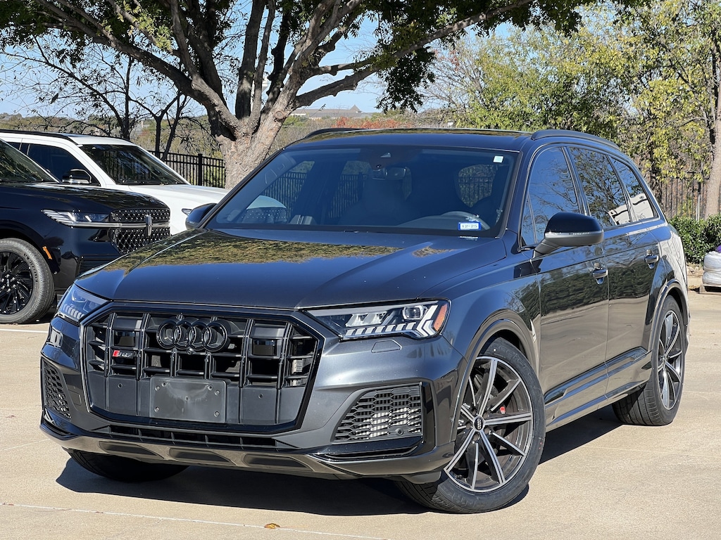 CARFAX One-Owner. Clean CARFAX. Daytona Gray Pearl 2021 Audi SQ7 Premium Plus quattro quattro 8-Speed Automatic with Tiptronic 4.0L V8 Turbocharged DOHC 32V LEV3-ULEV125 500hp SQ7 Premium Plus quattro, 4D Sport Utility, 4.0L V8 Turbocharged DOHC 32V LEV3-ULEV125 500hp, 8-Speed Automatic with Tiptronic, quattro, Daytona Gray Pearl, Gray Leather, 19 Speakers, 3rd row seats: bench, 4-Wheel Disc Brakes, ABS brakes, Adaptive suspension, Air Conditioning, All Weather Floor Mats, Alloy wheels, AM/FM radio: SiriusXM, Audi Active Lane Assist, Audi Adaptive Cruise Assist, Audi smartphone interface (Apple CarPlay/Android Auto), Auto High-beam Headlights, Auto-dimming door mirrors, Auto-dimming Rear-View mirror, Auto-leveling suspension, Automatic temperature control, Axle Ratio: TBD, Bang & Olufsen Premium Sound System, Black Optic Exterior Package, Brake assist, Bumpers: body-color, Carbon Vector Inlay, Cargo Mat, Compass, Contour/Ambient LED Interior Lighting Package, Delay-off headlights, Diamond Stitched Valcona Leather Seat Trim, Driver & Passenger Front Seats w/Ventilation, Driver Assistance Package, Driver door bin, Driver vanity mirror, Dual front impact airbags, Dual front side impact airbags, Electronic Stability Control, Emergency communication system: Audi connect CARE, PRIME & PLUS, Executive Package, Four wheel independent suspension, Front & Rear Door Audi S Beam, Front anti-roll bar, Front Bucket Seats, Front Center Armrest, Front dual zone A/C, Front fog lights, Front reading lights, Fully automatic headlights, Garage door transmitter: HomeLink, Genuine wood door panel insert, Heated door mirrors, Heated Front S Sport Seats, Heated front seats, Heated Rear Seats, Heated steering wheel, Illuminated entry, Intersection Assist, Leather Package - Upper & Lower, Leather Shift Knob, Leather steering wheel, Low tire pressure warning, Memory seat, Navigation system: Audi MMI Navigation plus with Touch Response, Occupant sensing airbag, Outside temperature display, Overhead airbag, Overhead console, Panic alarm, Passenger door bin, Passenger vanity mirror, Power door mirrors, Power driver seat, Power Liftgate, Power moonroof, Power passenger seat, Power steering, Power windows, Privacy Trunk Cover, Radio data system, Rain sensing wipers, Rear air conditioning, Rear anti-roll bar, Rear dual zone A/C, Rear fog lights, Rear reading lights, Rear seat center armrest, Rear side impact airbag, Rear window defroster, Rear window wiper, Reclining 3rd row seat, Remote keyless entry, Roof rack: rails only, Security system, Speed control, Speed-sensing steering, Split folding rear seat, Spoiler, SQ7 Black Optic Package, Steering wheel memory, Steering wheel mounted audio controls, Sunshades For Rear Door Side Windows & Tailgate, Tachometer, Telescoping steering wheel, Tilt steering wheel, Tow Hitch Receiver, Towing 7 Pin Connector, Towing Package, Traction control, Traffic Sign Recognition, Trip computer, Turn signal indicator mirrors, Variably intermittent wipers, Wheels: 21 Audi Sport 10-Spoke Star Design, Wheels: 21 Bi-Color 5-Twin-Spoke V Design.Recent Arrival!