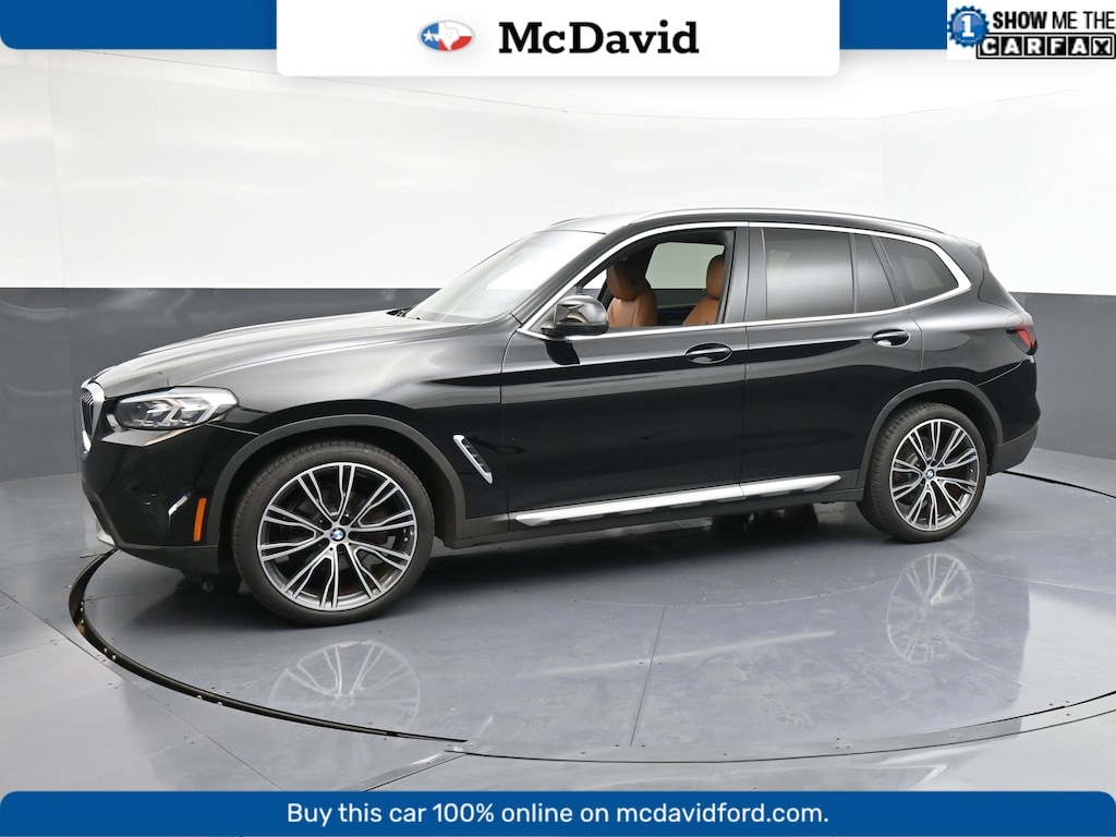 CARFAX One-Owner. Clean CARFAX. Jet Black 2022 BMW X3 sDrive30i RWD 8-Speed Automatic Sport 2.0L I4 TwinPower Turbo BLUETOOTH, REAR BACK UP CAMERA, APPLE CAR PLAY, 8-Speed Automatic Sport, 12 Speakers, Alloy wheels, AM/FM radio: SiriusXM with 360L, Apple CarPlay & Android Auto Compatibility, Auto-dimming door mirrors, Auto-dimming Rear-View mirror, Comfort Access Keyless Entry, Connected Package Pro, Emergency communication system: BMW Assist eCall, Exterior Parking Camera Rear, Front dual zone A/C, Fully automatic headlights, Garage door transmitter, Heated door mirrors, Heated Front Seats, Hi-Fi Sound System, Knee airbag, Low tire pressure warning, Memory seat, Navigation System, Perforated SensaTec Upholstery, Power door mirrors, Power driver seat, Power steering, Power windows, Rain sensing wipers, Rear air conditioning, Remote keyless entry, Speed-sensing steering, Sport steering wheel, Steering wheel mounted audio controls, Telescoping steering wheel, Tilt steering wheel, Turn signal indicator mirrors.23/29 City/Highway MPG