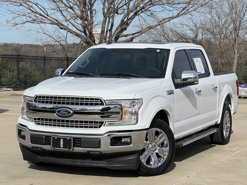CARFAX One-Owner. Clean CARFAX. Oxford White 2019 Ford F-150 Lariat RWD 10-Speed Automatic 5.0L V8 F-150 Lariat, 4D SuperCrew, 5.0L V8, 10-Speed Automatic, RWD, Oxford White, Black Leather, 110V/400W Outlet, 18 Machined-Aluminum Wheels, 7 Speakers, ABS brakes, Adjustable pedals, Air Conditioning, Alloy wheels, AM/FM radio: SiriusXM, AppLink/Apple CarPlay and Android Auto, Auto High-beam Headlights, Auto-dimming door mirrors, Auto-dimming Rear-View mirror, Automatic temperature control, BLIS Blind Spot Information System, Brake assist, Bumpers: chrome, Chrome 2-Bar Grille w/4 Minor Bars, Chrome Angular Step Bars, Chrome Door & Tailgate Handles w/Body-Color Bezel, Chrome Skull Caps on Exterior Mirrors, Class IV Trailer Hitch Receiver, Compass, Delay-off headlights, Driver door bin, Driver vanity mirror, Dual front impact airbags, Dual front side impact airbags, Electronic Stability Control, Emergency communication system: SYNC 3 911 Assist, Engine Oil Cooler, Equipment Group 501A Mid, Extended Range 36 Gallon Fuel Tank, Exterior Parking Camera Rear, Front anti-roll bar, Front Center Armrest w/Storage, Front dual zone A/C, Front fog lights, Front License Plate Bracket, Front reading lights, Front wheel independent suspension, Fully automatic headlights, Heated door mirrors, Heated front seats, Illuminated entry, Lariat Chrome Appearance Package, Leather-Trimmed 40/20/40 Front Seat, LED Sideview Mirror Spotlights, Low tire pressure warning, Memory seat, Occupant sensing airbag, Outside temperature display, Overhead airbag, Overhead console, Panic alarm, Passenger door bin, Passenger vanity mirror, Pedal memory, Power door mirrors, Power driver seat, Power Glass Sideview Mirr w/Body-Color Skull Caps, Power passenger seat, Power steering, Power windows, Pro Trailer Backup Assist, Radio data system, Radio: AM/FM Stereo w/6 Speakers, Rear reading lights, Rear seat center armrest, Rear step bumper, Rear window defroster, Remote keyless entry, Remote Start System w/Remote Tailgate Release, Reverse Sensing System, Security system, Single-Tip Chrome Exhaust, SiriusXM Radio, Speed control, Speed-sensing steering, Split folding rear seat, Steering wheel mounted audio controls, SYNC 3, Tachometer, Telescoping steering wheel, Tilt steering wheel, Traction control, Trailer Tow Package, Trip computer, Turn signal indicator mirrors, Twin Panel Moonroof, Universal Garage Door Opener, Upgraded Front Stabilizer Bar, Variably intermittent wipers, Ventilated front seats, Voice-Activated Touchscreen Navigation, Voltmeter, Wheels: 18 Chrome-Like PVD, Wheels: 20 Chrome-Like PVD.Odometer is 101114 miles below market average!