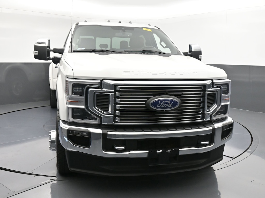 CARFAX One-Owner. Star White Metallic Tri-Coat 2022 Ford F-350SD King Ranch DRW 4WD 10-Speed Automatic Power Stroke 6.7L V8 DI 32V OHV Turbodiesel BLUETOOTH, REAR BACK UP CAMERA, APPLE CAR PLAY, 4WD, 10 Speakers, 5th Wheel/Gooseneck Hitch Prep Package, 6 Angular Bright Polished Step Bars, Adaptive Cruise Control & Collision Warning, Alloy wheels, Auto-dimming Rear-View mirror, Body-Color Door Handles w/Chrome Insert, Chrome Exhaust Tip, Chrome Front & Rear Bumpers, Chrome Package, Compass, Dual rear wheels, Exterior Parking Camera Rear, Flow-Through Console, Front dual zone A/C, Front Splash Guards/Mud Flaps (Pre-Installed), Fully automatic headlights, FX4 Off-Road Package, GVWR: 14,000 lb Payload Package, Hill Descent Control, King Ranch Monochromatic Paint Package, King Ranch Ultimate Package, Low tire pressure warning, Multi-Contour Seats, Off-Road Specifically Tuned Shock Absorbers, Order Code 720A, Outside temperature display, Power driver seat, Power Front & Rear Seat Windows, Power Locks, Power steering, Power windows, Power-Adjustable Pedals, Power-Deployable Running Boards, PowerScope Trailer Tow Mirrors w/Heat, Quad Beam LED Headlamps & LED Taillamps, Radio: B&O Sound System by Bang & Olufsen, SiriusXM Radio w/360L, Steering wheel mounted audio controls, SYNC 4 w/Enhanced Voice Recognition, Telescoping steering wheel, Tilt steering wheel, Twin Panel Power Moonroof, Unique Chrome Mirror Caps, Unique FX4 Off-Road Box Decal, Unique King Ranch Leather 40/Console/40 Front Seats.Recent Arrival! Odometer is 41558 miles below market average!