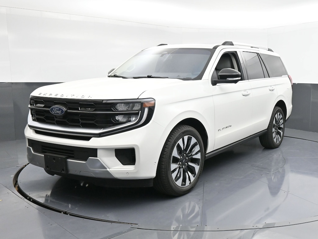 CARFAX One-Owner. Clean CARFAX. Star White Metallic Tri-Coat 2025 Ford Expedition Platinum 4WD 10-Speed Automatic EcoBoost 3.5L V6 GTDi DOHC 24V Twin Turbocharged BLUETOOTH, REAR BACK UP CAMERA, APPLE CAR PLAY, 4WD, 10 Speakers, 2nd Row Power-Folding Captain's Chairs, Adjustable pedals, Alloy wheels, Apple CarPlay/Android Auto, Auto-dimming Rear-View mirror, Compass, Continuous Control Damping Suspension, Delay-off headlights, Driver's Package, Emergency communication system: 911 Assist, Equipment Group 600A Standard Package, Exterior Parking Camera Rear, Front dual zone A/C, Fully automatic headlights, Garage door transmitter, Heated & Ventilated Leather Front Captain's Chairs, Heated door mirrors, Heated front seats, Heated rear seats, Heated steering wheel, Low tire pressure warning, Memory seat, Navigation System, Outside temperature display, Pedal memory, Power driver seat, Power moonroof: Vista Roof, Power steering, Power windows, Radio: B&O Sound System by Bang & Olufsen, Radio: B&O Unleashed Sound System by Bang & Olufsen, Rain sensing wipers, Remote keyless entry, SiriusXM w/360L, Steering wheel memory, Telescoping steering wheel, Tilt steering wheel, Turn signal indicator mirrors, Ventilated front seats.Recent Arrival!