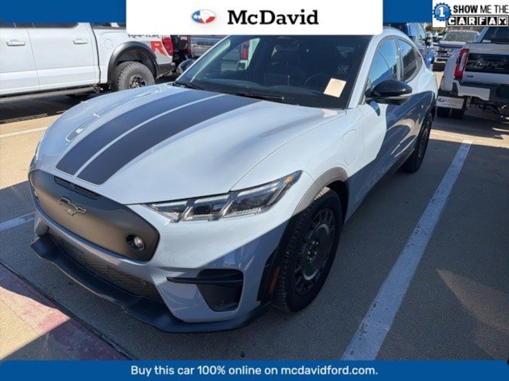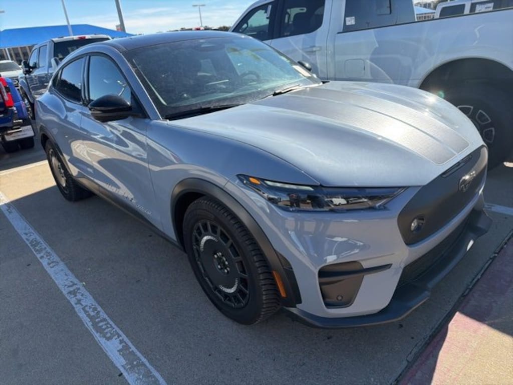 CARFAX One-Owner. Clean CARFAX. Glacier Gray Metallic TriCoat 2025 Ford Mustang Mach-E GT AWD Single-Speed Automatic Electric Motor Black Painted Steel Roof, Cellular Connectivity for Audio/Video Streaming, Door, Wheel, Roof & Bumper Trim, Equipment Group 400A Standard Package, Ford Connectivity Package (One-Time Purchase), Ford Performance Front Seats, Hood & Decklid Stripes, Mach-E Rally Door Graphics, Mustang Mach-E GT Performance Upgrade, Mustang Mach-E Rally, Oxford White Steering Wheel/Door/IP Interior Trim, Rallycross-Tuned MagneRide Damping System, RallySport Drive Mode, Sport Pedals, Unique Front Splitter in Dark Carbonized Gray, Unique Grille Shield in Dark Carbonized Gray, Unique Raised Rear Spoiler in Dark Carbonized Gray, Wheels: 19 High Gloss Oxford White.Odometer is 2923 miles below market average! 90/81 City/Highway MPG