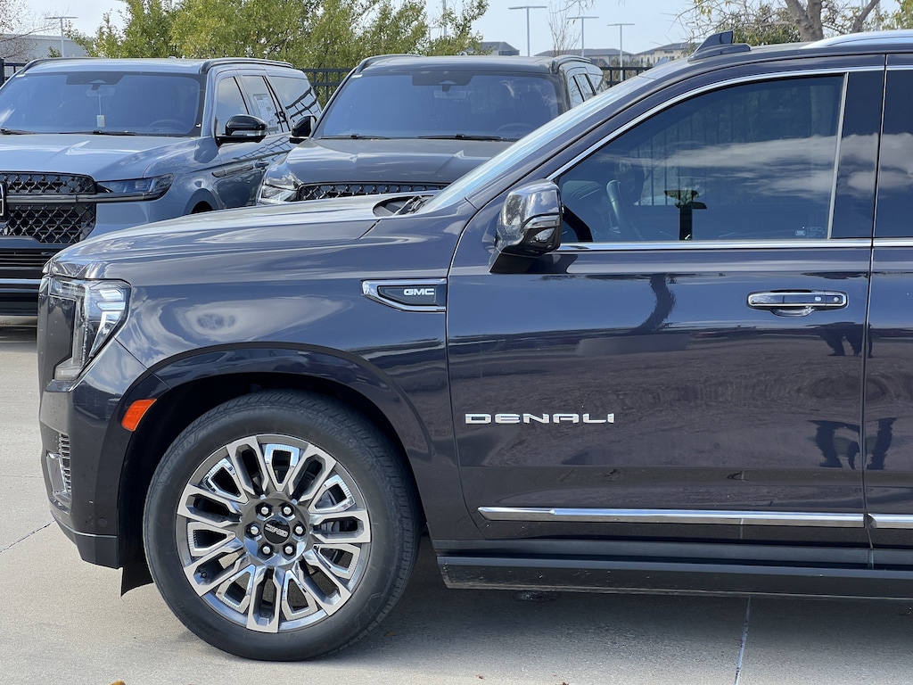 CARFAX One-Owner. Clean CARFAX. Titanium Rush Metallic 2024 GMC Yukon Denali Ultimate 4WD 10-Speed Automatic with Overdrive EcoTec3 6.2L V8 Yukon Denali Ultimate, 4D Sport Utility, EcoTec3 6.2L V8, 10-Speed Automatic with Overdrive, 4WD, Titanium Rush Metallic, Alpine Umber Leather, 15 Diagonal Multi-Color Head-Up Display, 16-Way Power Seat Adjusters, 18 Speakers, 2 Presets For Outside Rearview Mirrors, 3.23 Rear Axle Ratio, 3rd Row 60/40 Power-Folding Split-Bench Seat, 3rd row seats: split-bench, 4-Wheel Disc Brakes, ABS brakes, Adaptive Cruise Control, Adaptive suspension, Advanced Security Package, Advanced Technology Package, Air Conditioning, Air Ride Adaptive Suspension, Alloy wheels, AM/FM radio: SiriusXM with 360L, AM/FM Stereo, Apple CarPlay/Android Auto, Auto High-beam Headlights, Auto-dimming door mirrors, Auto-dimming Rear-View mirror, Auto-leveling suspension, Automatic temperature control, Bodyside moldings, Bose Performance Series Sound System w/18 Speakers, Brake assist, Bright Front & Rear Door Sill Plates, Bumpers: body-color, Chrome Door Handles w/Body-Color Strip, Compass, Delay-off headlights, Driver door bin, Driver vanity mirror, Dual Exhaust System, Dual front impact airbags, Dual front side impact airbags, Dual-Pane Panoramic Power Sunroof, Electronic Limited Slip Differential (eLSD), Electronic Stability Control, Emergency communication system: OnStar and GMC connected services capable, Enhanced Automatic Emergency Braking, Enhanced Automatic Parking Assist, Extra Capacity Cooling System, Floor Console, Four wheel independent suspension, Front anti-roll bar, Front Bucket Seats, Front Center Armrest, Front dual zone A/C, Front fog lights, Front reading lights, Full Grain Leather Seats, Fully automatic headlights, Garage door transmitter, Glass Breakage Sensor, Hands-Free Power Programmable Rear Liftgate, HD Surround Vision, Headphones, Heads-Up Display, Heated 2nd Row Outboard Position Seats, Heated door mirrors, Heated Driver & Front Passenger Seats, Heated front seats, Heated rear seats, Heated Steering Wheel, Heated steering wheel, Hill Descent Control, Hitch View, Illuminated entry, Inside Rearview Auto-Dimming Rear Camera Mirror, Integrated Trailer Brake Controller, Leather steering wheel, Leather-Wrapped Steering Wheel, License Plate Front Mounting Package, Low tire pressure warning, Magnetic Ride Control Suspension, Max Trailering Package, Memory seat, Navigation System, Occupant sensing airbag, Outside Heated Power-Adjustable Mirrors, Outside temperature display, Overhead airbag, Overhead console, Panic alarm, Passenger door bin, Passenger vanity mirror, Perforated Heated & Ventilated Dr & Frt Pass Seats, Power door mirrors, Power driver seat, Power Liftgate, Power moonroof, Power passenger seat, Power Release 2nd Row Bucket Seats, Power steering, Power Tilt & Telescopic Steering Column, Power windows, Power-Retractable Assist Steps, Preferred Equipment Group 5SB, Premium Capability Package w/Active Response 4WD, Rain sensing wipers, Rear air conditioning, Rear anti-roll bar, Rear audio controls, Rear Camera Mirror Washer, Rear Cross Traffic Alert, Rear Pedestrian Alert, Rear reading lights, Rear Seat Media System, Rear window defroster, Rear window wiper, Remote keyless entry, Reverse Automatic Braking, Roof rack: rails only, Safety Alert Seat, Security system, SiriusXM w/360L, Smart Trailer Integration Indicator, Speed control, Speed-sensing steering, Split folding rear seat, Spoiler, Sport Pedal Cover Kit (LPO), Steering wheel memory, Steering wheel mounted audio controls, Super Cruise, Tachometer, Telescoping steering wheel, Theft-Deterrent Alarm System, Tilt steering wheel, Traction control, Trailer Side Blind Zone Alert, Trip computer, Turn signal indicator mirrors, Universal Home Remote, Vader Bodyside Moldings, Variably intermittent wipers, Vehicle Inclination Sensor, Vehicle Interior Movement Sensor, Ventilated front seats, Voltmeter, Wheel Locks (Set of 4) (LPO), Wheels: 22 7-Spoke