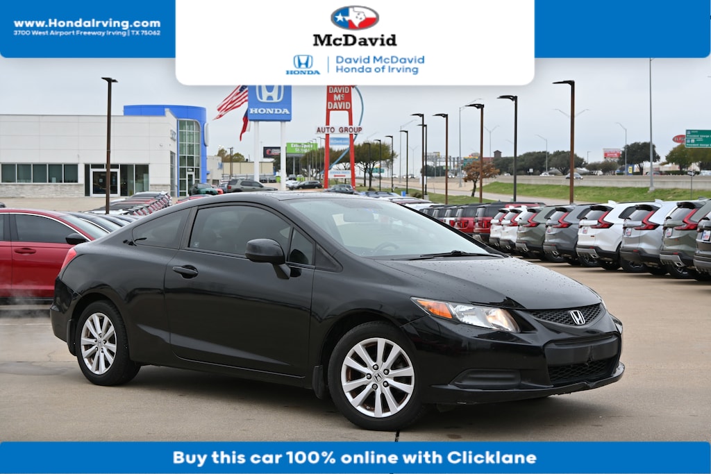This 2012 Civic has a very popular Crystal Black Pearl exterior color with Black that looks fantastic! Bluetooth Keyless Entry PRICED TO SELL QUICKLY! Research suggests it will not be available for long. -Carfax One Owner- This Crystal Black Pearl 2012 Honda Civic EX is priced to sell fast! Please visit our website to view the complete Value Report, Vehicle History Report and to learn more about this Civic at https://www.mcdavidhondairving.com/ . David McDavid Honda of Irving prides itself on value pricing its vehicles and exceeding all customer expectations! The next step? Give us a call to confirm availability and schedule a hassle free test drive (469) 405-3340! We are located at: 3700 W Airport Fwy, Irving, TX 75062. For more than 70 years, David McDavid Honda of Irving has been serving the automotive needs of drivers throughout the Dallas Fort Worth Metroplex. We stock a large selection of new and used Honda cars at great prices. If you need assistance with choosing a new car, obtaining financing, or have service and repair questions, our friendly and knowledgeable staff will get your questions answered. Our dealership is located in Irving, but we proudly serve the Dallas, Fort Worth, Arlington, and Grand Prairie, and DFW area.