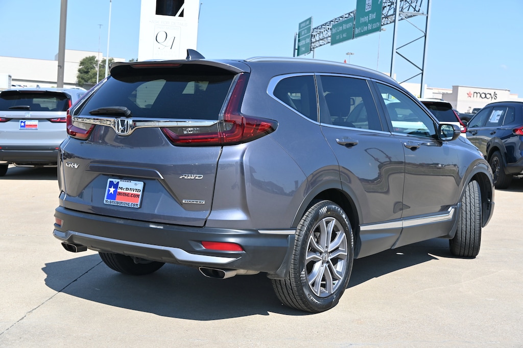 THIS CR-V IS CERTIFIED! CARFAX ONE OWNER! This 2021 Honda CR-V Touring has a sharp Modern Steel Metallic exterior and a super clean Black interior! Bluetooth Heated Front Seats Keyless Entry Remote Start Backup Camera Navigation leather seats! The navigation system is best in class and very easy to use! You can find more information on this CR-V on our website: https://www.mcdavidhondairving.com/. Our vehicles are value priced and move quickly. Be sure to call us to confirm availability and to schedule a hassle free test drive (469) 405-3340! We are located at: 3700 W Airport Fwy, Irving, TX 75062. For more than 70 years, David McDavid Honda of Irving has been serving the automotive needs of drivers throughout the Dallas Fort Worth Metroplex. We stock a large selection of new and used Honda cars at great prices. If you need assistance with choosing a new car, obtaining financing, or have service and repair questions, our friendly and knowledgeable staff will get your questions answered. Our dealership is located in Irving, but we proudly serve the Dallas, Fort Worth, Arlington, and Grand Prairie and DFW area.