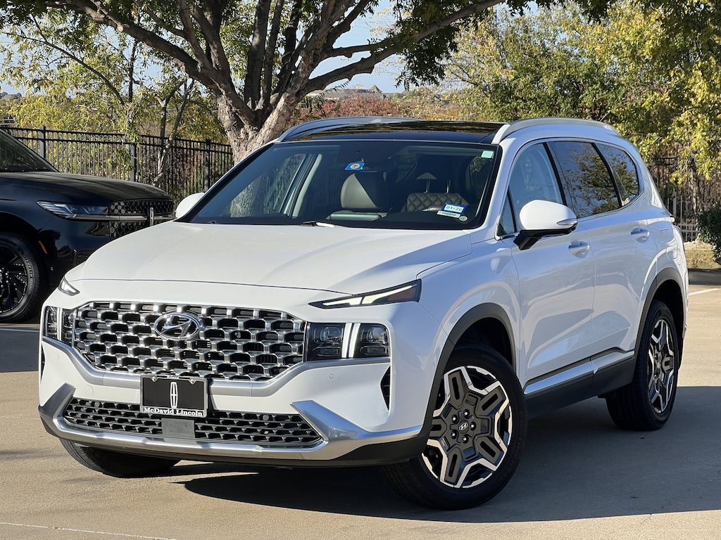 CARFAX One-Owner. Quartz White 2022 Hyundai Santa Fe Hybrid Limited AWD 6-Speed Automatic with Shiftronic I4 Santa Fe Hybrid Limited, 4D Sport Utility, I4, 6-Speed Automatic with Shiftronic, AWD, Quartz White, Beige Leather, 12 Speakers, 3.510 Axle Ratio, 4-Wheel Disc Brakes, ABS brakes, Air Conditioning, Alloy wheels, AM/FM radio: SiriusXM, Apple CarPlay & Android Auto, Auto High-beam Headlights, Auto-dimming Rear-View mirror, Automatic temperature control, Brake assist, Bumper Applique, Bumpers: body-color, Cargo Cover/Screen, Cargo Net, Cargo Package, Cargo Tray, Carpeted Floor Mats, Delay-off headlights, Driver door bin, Driver vanity mirror, Dual front impact airbags, Dual front side impact airbags, Electronic Stability Control, Emergency communication system, First Aid Kit, Four wheel independent suspension, Front anti-roll bar, Front Bucket Seats, Front Center Armrest, Front dual zone A/C, Front reading lights, Fully automatic headlights, Garage door transmitter: HomeLink, harman/kardon® Speakers, Heated & Ventilated Front Bucket Seats, Heated door mirrors, Heated front seats, Heated rear seats, Heated steering wheel, Illuminated entry, Leather Seat Trim, Leather steering wheel, Low tire pressure warning, Memory seat, Mudguards, Navigation System, Occupant sensing airbag, Option Group 01, Outside temperature display, Overhead airbag, Overhead console, Panic alarm, Passenger door bin, Passenger vanity mirror, Power door mirrors, Power driver seat, Power Liftgate, Power moonroof, Power passenger seat, Power steering, Power windows, Radio: AM/FM Harman Kardon Audio, Rain sensing wipers, Rear anti-roll bar, Rear seat center armrest, Rear window defroster, Rear window wiper, Remote keyless entry, Security system, Speed control, Speed-sensing steering, Split folding rear seat, Spoiler, Steering wheel mounted audio controls, Tachometer, Telescoping steering wheel, Tilt steering wheel, Traction control, Trip computer, Turn signal indicator mirrors, Variably intermittent wipers, Ventilated front seats, Wheel Locks, Wheels: 19 x 7.5J Alloy.33/30 City/Highway MPG