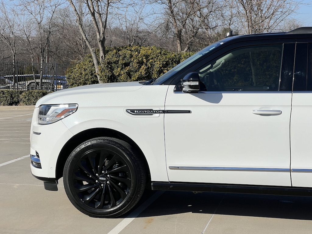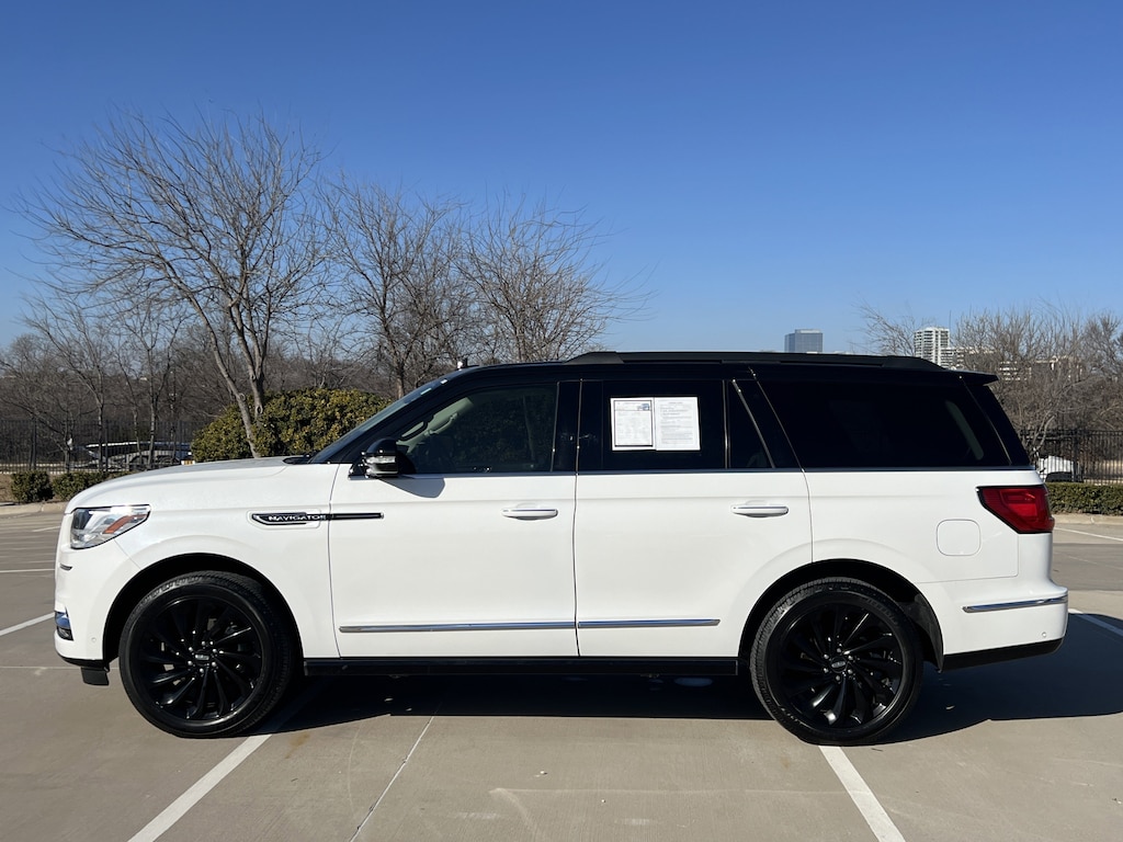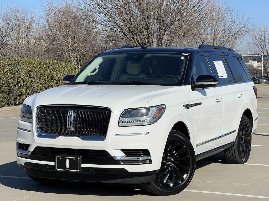 CARFAX One-Owner. Clean CARFAX. White 2021 Lincoln Navigator Black Label 4WD 10-Speed Automatic V6 Navigator Black Label, 4D Sport Utility, V6, 10-Speed Automatic, 4WD, White, Alpine Leather, 20 Speakers, 3.73 Axle Ratio, 3rd row seats: split-bench, 4-Wheel Disc Brakes, ABS brakes, Adaptive suspension, Adjustable pedals, Air Conditioning, Alloy wheels, AM/FM radio: SiriusXM, Audio memory, Auto High-beam Headlights, Auto tilt-away steering wheel, Auto-dimming door mirrors, Auto-dimming Rear-View mirror, Auto-leveling suspension, Automatic temperature control, Bodyside moldings, Brake assist, Bumpers: body-color, Compass, Delay-off headlights, Driver door bin, Driver vanity mirror, Driver's Seat Mounted Armrest, Dual front impact airbags, Dual front side impact airbags, Electronic Stability Control, Emergency communication system: 911 Assist, Exterior Parking Camera Rear, Floor Carpet/Mats - Espresso w/Dinamica Suede, Four wheel independent suspension, Front anti-roll bar, Front Bucket Seats, Front dual zone A/C, Front fog lights, Front reading lights, Fully automatic headlights, Garage door transmitter, Genuine wood console insert, Genuine wood door panel insert, GVWR: 7,625 lbs Payload Package, Head restraints memory, Headliner - Alpine Dinamica Suede, Heads-Up Display, Heated door mirrors, Heated front seats, Heated rear seats, Heated steering wheel, HVAC memory, Illuminated entry, Knee airbag, Leather steering wheel, Leather-Wrapped Interior - Alpine/Espresso, Low tire pressure warning, Memory seat, Navigation System, Occupant sensing airbag, Outside temperature display, Overhead airbag, Overhead console, Panic alarm, Passenger door bin, Passenger seat mounted armrest, Passenger vanity mirror, Pedal memory, Power adjustable front head restraints, Power adjustable rear head restraints, Power door mirrors, Power driver seat, Power Liftgate, Power moonroof: Panoramic Vista Roof, Power passenger seat, Power steering, Power windows, Radio data system, Radio: Revel Ultima AM/FM/HD/MP3 Audio System, Rain sensing wipers, Rear air conditioning, Rear anti-roll bar, Rear audio controls, Rear reading lights, Rear window defroster, Rear window wiper, Reclining 3rd row seat, Remote keyless entry, Security system, Silverwood Appliques, SiriusXM Radio, Speed control, Speed-sensing steering, Speed-Sensitive Wipers, Split folding rear seat, Spoiler, Steering wheel memory, Steering wheel mounted audio controls, SYNC 3 Communications & Entertainment System, Tachometer, Telescoping steering wheel, Tilt steering wheel, Traction control, Trip computer, Turn signal indicator mirrors, Variably intermittent wipers, Venetian Lthr Htd/Ventilated Captain's Chairs (B), Ventilated front seats, Voice-Activated Touchscreen Navigation System, Wheels: 22 21-Spoke Bright Machined Aluminum.