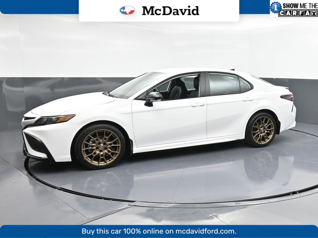 CARFAX One-Owner. Clean CARFAX. Ice Cap 2024 Toyota Camry SE Nightshade FWD 8-Speed Automatic 2.5L I4 DOHC 16V BLUETOOTH, REAR BACK UP CAMERA, APPLE CAR PLAY, Black w/Sport SofTex Seat Trim w/Fabric Inserts, 6 Speakers, Alloy wheels, Apple CarPlay/Android Auto, Exterior Parking Camera Rear, Front dual zone A/C, Fully automatic headlights, Heated door mirrors, Knee airbag, Leather steering wheel, Low tire pressure warning, Nightshade Edition, Outside temperature display, Power door mirrors, Power driver seat, Power steering, Power windows, Remote keyless entry, Speed-sensing steering, Steering wheel mounted audio controls, Telescoping steering wheel, Tilt steering wheel.Odometer is 37008 miles below market average! 28/39 City/Highway MPG