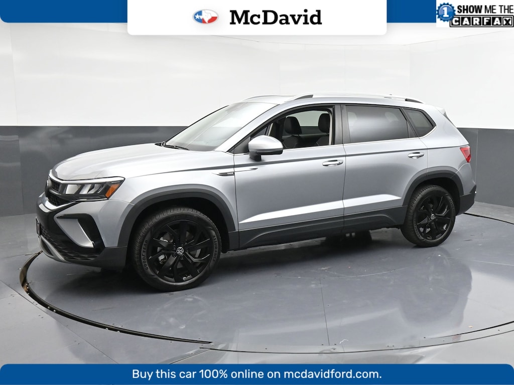 CARFAX One-Owner. Clean CARFAX. Silver Metallic 2024 Volkswagen Taos 1.5T SE FWD 8-Speed Automatic with Tiptronic 1.5L I4 Turbocharged DOHC 16V LEV3-SULEV30 158hp BLUETOOTH, REAR BACK UP CAMERA, APPLE CAR PLAY, 6 Speakers, Alloy wheels, Black Wheel Package, Compass, Emergency communication system: VW Car-Net Safe & Secure 5-year, Exterior Parking Camera Rear, Front dual zone A/C, Fully automatic headlights, Heated door mirrors, Heated front seats, Heated steering wheel, Leather Shift Knob, Low tire pressure warning, Outside temperature display, Panoramic Sunroof Package, Power door mirrors, Power driver seat, Power steering, Power windows, Radio: MIB3 Composition Media AM/FM/HD, Rain sensing wipers, Remote keyless entry, Speed-sensing steering, Steering wheel mounted audio controls, Telescoping steering wheel, Tilt steering wheel.Odometer is 20462 miles below market average! 28/36 City/Highway MPG